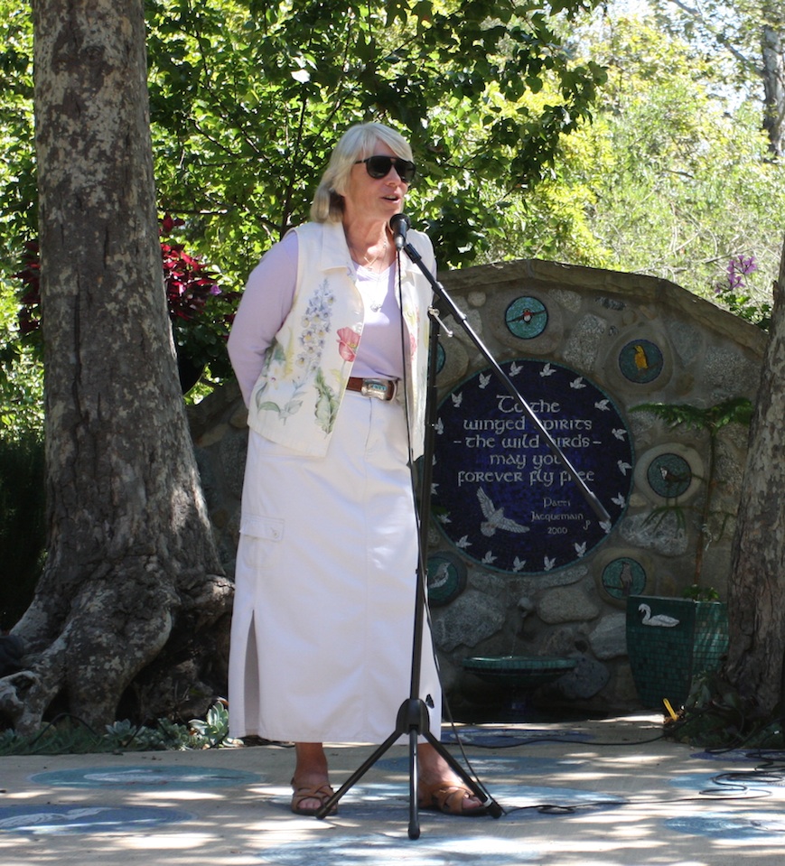 Patty Jacquemain talks about Creekspirit Wildlife Foundation and welcomes Audubon Auction attendees to her special spot along Mission Creek