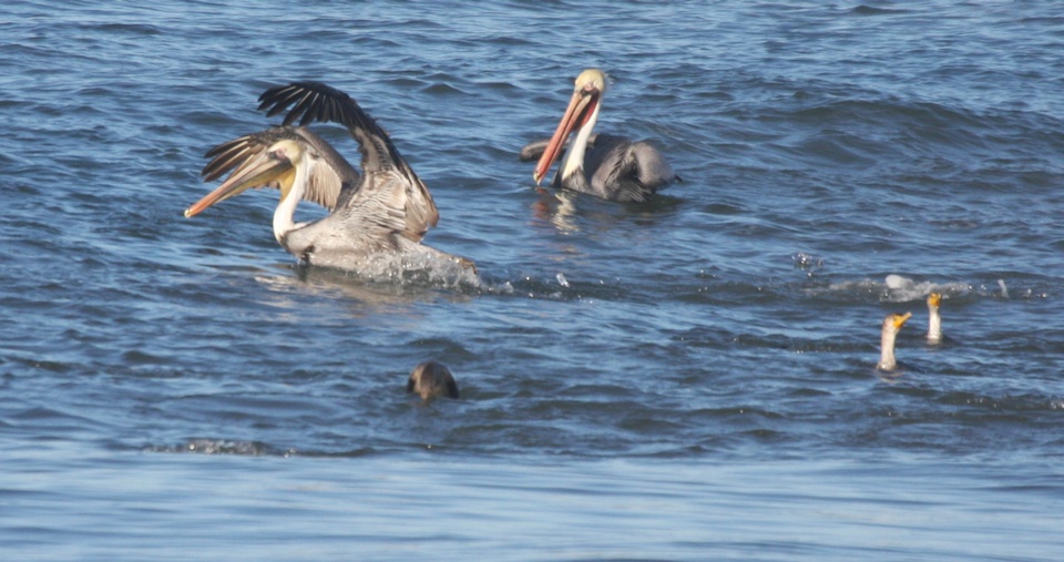 Brown pelican, Double-creasted Cormorant, Sands Beach - COPR