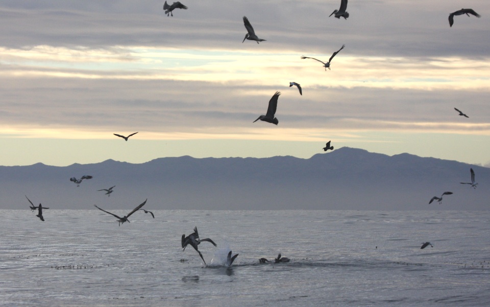 Brown pelican, Devereux Point, Fishing