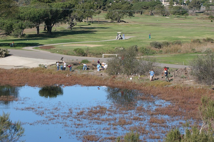 Julie with a Resotration project crew at Devereux Slough