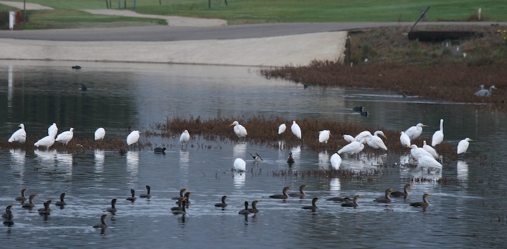 Cormorants, Devereux Slough, Great Egret, Snowy Egret