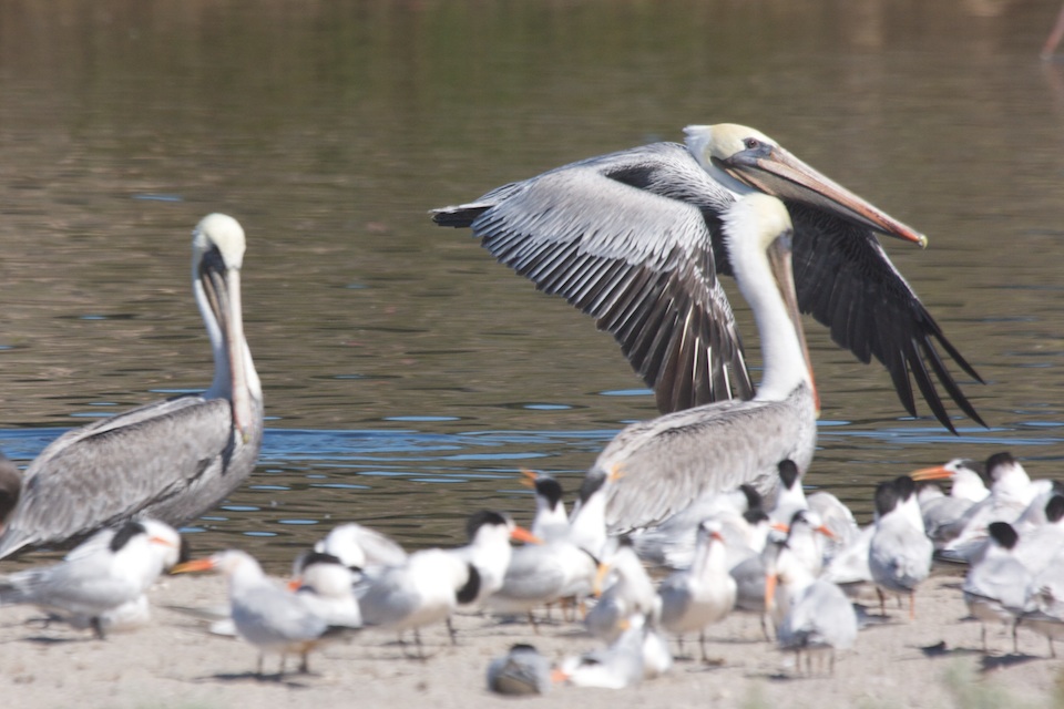 Brown pelican, Devereux Slough, Elegant Tern