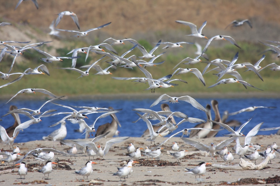 Brown pelican, Elegant Tern, Sands Beach - COPR