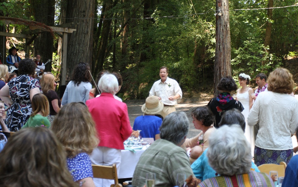Caption: Harvey gives a long, fun and spirited toast to the couple