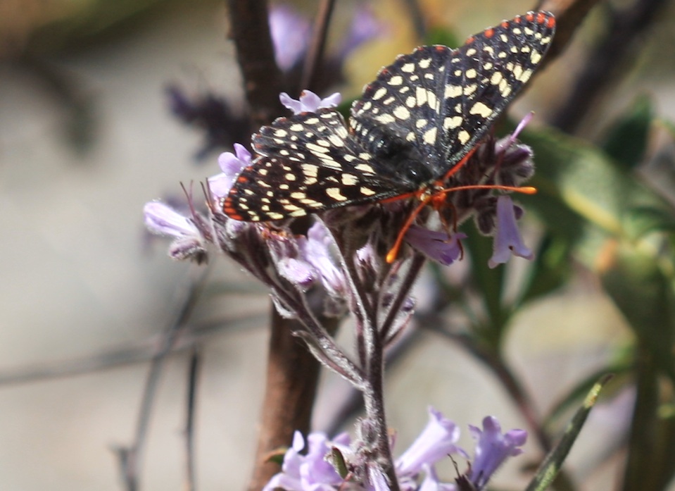 California yerba santa - Eriodictyon californicum, Manzana Trail Area - Sunset Valley area - Los Padres National Forest - Santa Lucia Ranger District, Variable Checkerspot