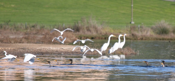 Cormorants, Great Egret, Snowy Egret, UCSB Lagoon