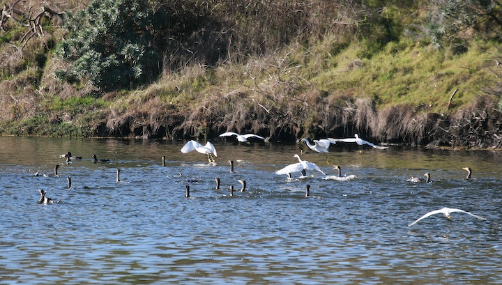Cormorants, Snowy Egret, UCSB Lagoon