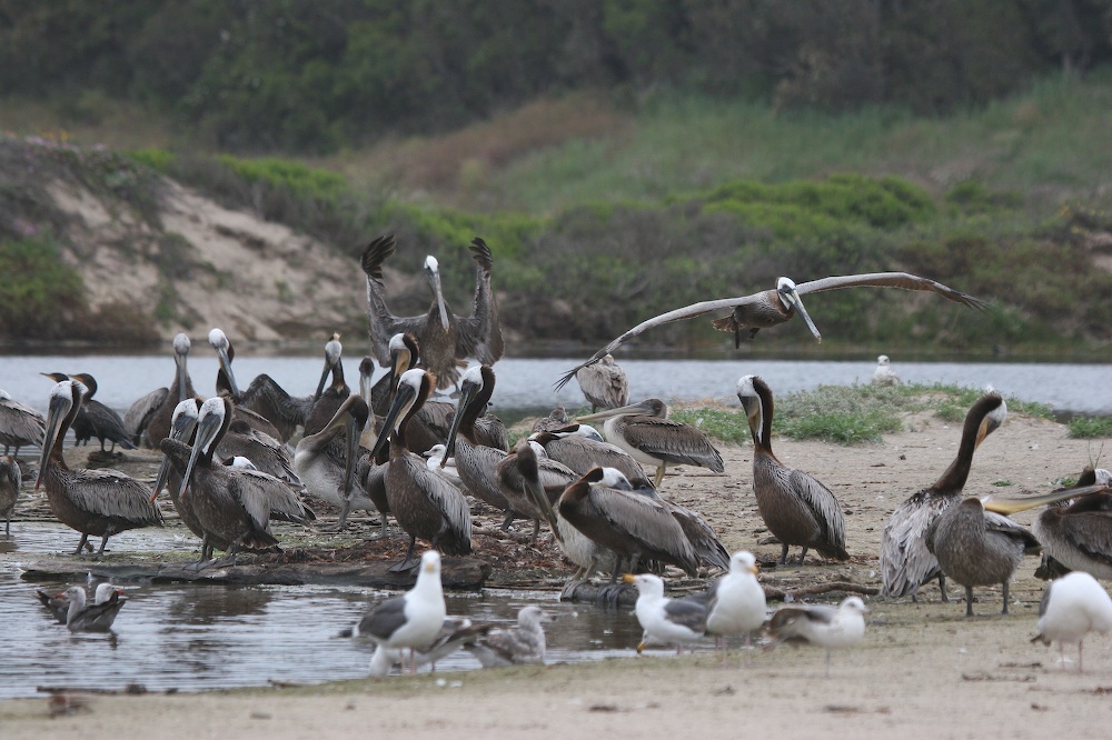 Brown pelican, Gulls, Sands Beach - COPR