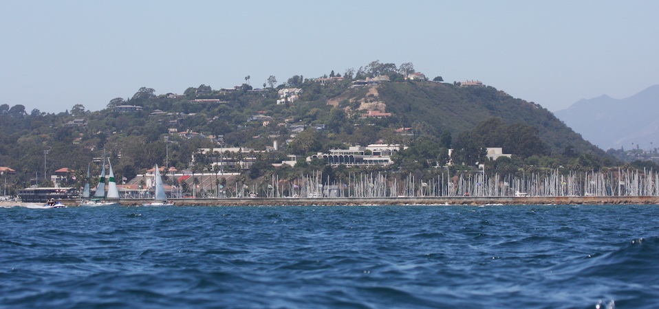 Santa Barbara Breakwater and Harbor with City College just up above.