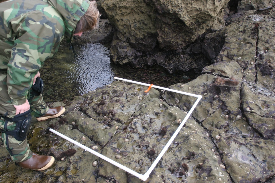 Amy counting the Lottia gigantea within the quadrat at Thousand Springs