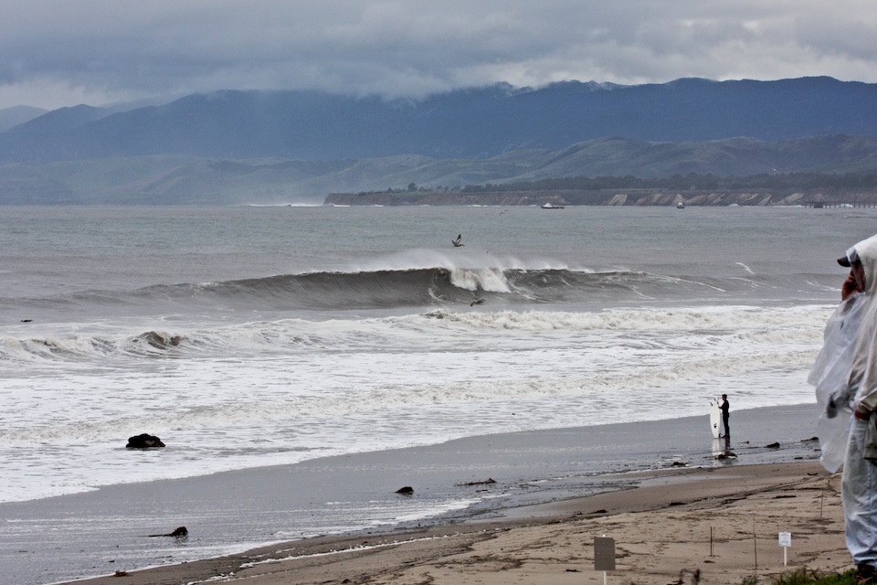 Randy, one of the many regular greeters at Sands, phoning in the surf report - you should of been here an hour ago...